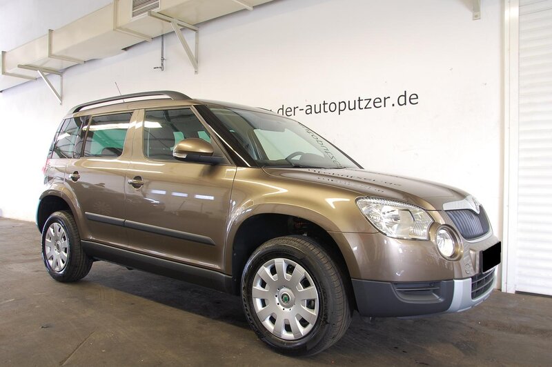 Der "Matto-Braun Metallic" lackierte Yeti hat nach seiner ersten Profi Aufbereitungswäsche beim Autoputzer eine hochwertige Langzeitversiegelung erhalten.