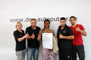 Frau Sylvie Dayiku Pomame (Mutter von drei Kindern) wurde beim Autoputzer Deutschland ® in Gütersloh im August 2011 in der professionellen Innenraumaufbereitung & Innenreinigung von Fahrzeugen geschult.