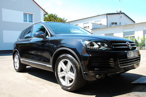 Fit für den 2011'er Sommer. Dieser VW Touareg V6 TDI wurde im Mai 2011 in der Autoputzer Deutschland Zentrale in Gütersloh abgegeben, um die Insektenreste, die sich im Laufe des Frühlings in den Lack eingebrannt hatten, zu säubern und einen besseren Schutz der Lackoberfläche herbeizuführen.