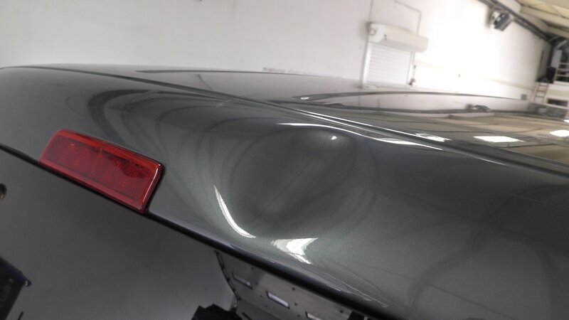 Denn der Kunde wollte nicht einen Austausch der Heckklappe und eine Neulackierung. Das Autoputzer Team bot dem Kunden an, die Dellenentfernung mal zu beginnen und zu sehen, wie gut die Delle instand gesetzt werden kann, gerade auch in der Rundung in einem verstärkten Bereich...