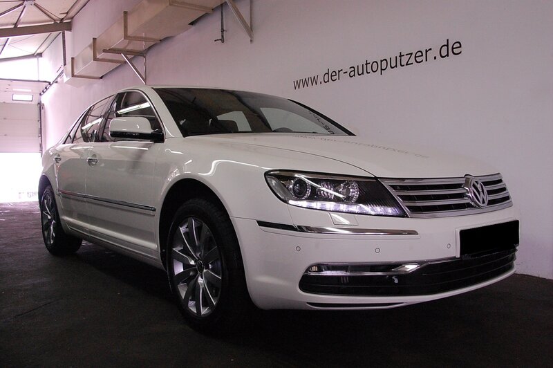 Nach einer professionellen Fahrzeugwäsche und einer Lackversiegelung mit edlem Carnaubawachs wurde der Phaeton erfolgreich auf Hochglanz nach München verabschiedet.