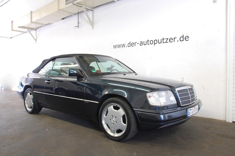 Auf dem Weg zum Oldtimer musste dieser Mercedes Benz W124 Cabrio im August 2010 einen Stop beim Autoputzer Deutschland ® in Gütersloh machen.