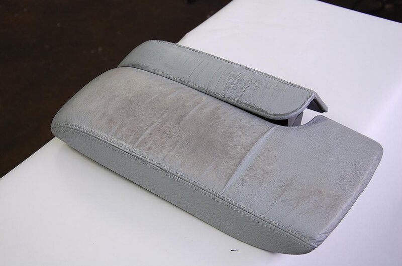 Gefragt, getan. Die Farbe und die Lederstruktur der Mittelarmlehne war schon erheblich abgenutzt.